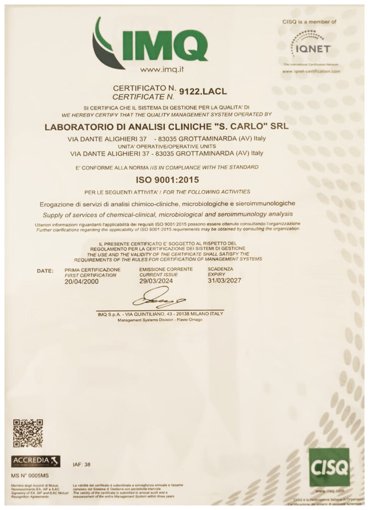 © LABORATORIO SAN CARLO s.r.l. Via Dante Alighieri, 37 83035 GROTTAMINARDA (AV) - P.IVA 00524250644